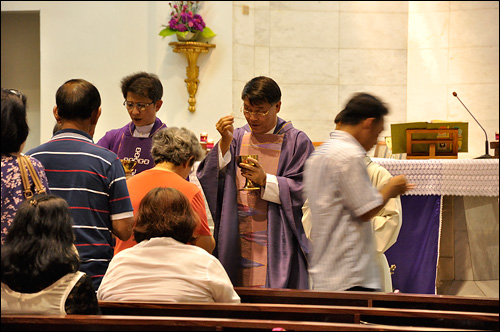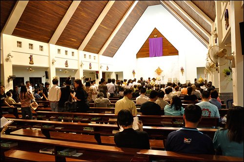 สัปดาห์ที่ผ่านมา (05-03-2014) เข้าสู่เทศกาลปัสกา เริ่มด้วยวันพุธรับเถ้า โดยคุณพ่อสมชายเจ้าอาวาส ได้เน้นให้สัตบุรุษได้เห็นความสำคัญของวันพุธรับเถ้า ให้พยายามมารับเถ้าในวันพุธให้ได้ ซึ่งสัตบุรุษก็ได้เข้าใจในเจตนารมณ์ดี จึงได้มากันอย่างพร้อมเพรียง มากขนาดไหนดูได้จาก gallery ด้านล่างนี้ครับ