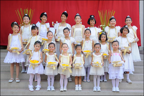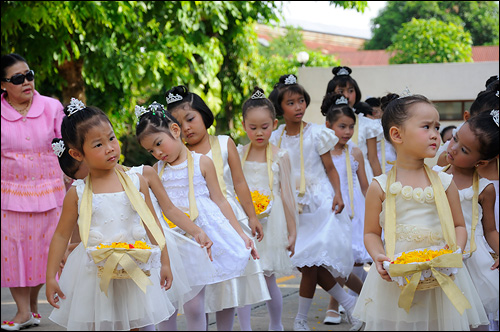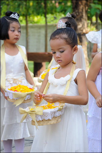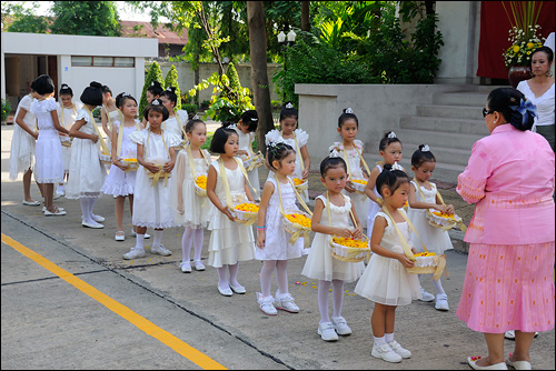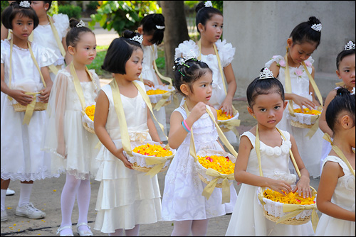 วันสมโภชพระวรกายและพระโลหิตพระคริสตเจ้า ที่จัดพิธีแห่ ศิลมหาสนิทปีนี้ มีบรรดาเด็กๆ มาแต่งตัวเป็นเทพธิดาน้อยๆ โปรยดอกไม้ตามทางเดิน นำหน้าขบวนแห่ ศิลมหาสนิท ทำให้พิธีแห่ศิลมหาสนิท ดูสวยสดงดงามเป็นอย่างมาก เชิญชมบรรยากาศในวันนั้นได้จากภาพด้านล่างนี้นะครับ