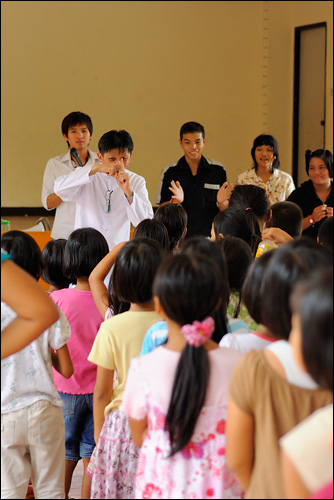 ประมวลภาพ วัดพระชนนีของพระเป็นเจ้า โดยคุณพ่อ สมชาย , เยาวชน ของวัด , สภาภิบาล และสัตบุรุษ ได้ไปเยี่ยมและช่วยเหลือศูนย์มาร์ติน ที่วัดแม่พระมหาการุณย์ ปากเกร็ด โดยทางเยาวชนของวัดได้ จัดกิจกรรมให้แก่เด็กๆ ทั้งกิจกรรมกลุ่มใหญ่ และแบ่งกลุ่มย่อย ทั้งนี้ กิจกรรมทั้งหมด ได้สอดแทรก ในเรื่องของความมีน้ำใจ และให้ เด็กๆได้เรียนรู้ถึงความรักใคร่สามัคคีกันเป็นอย่างดี หลังจากกิจกรรมแล้ว คุณพ่อ สมชาย ได้มอบเงินจำนวนหนึ่ง เพื่อสนับสนุนกิจการงานของทางศูนย์ด้วย โดยมอบผ่านทางตัวแทนของทางศูนย์มาร์ติน และงานนี้ เด็กๆ ต่างได้รับความสนุกสนาน และอิ่มอร่อยกันถ้วนหน้า เพราะหลังจากเล่นกิจกรรมแล้ว ยังมีไอศครีมอร่อยให้ได้กินกัน หลากหลายรสชาติ เด็กๆ ต่างยิ้มน้อยยิ้มใหญ่ไปตามๆ กัน และเยาวชนของวัด ก็ได้รับคำชมเชยกลับมาว่า ทีมงานมีเข็มแข็ง สามารถดำเนินงานที่ได้รับมอบหมาย และประสานงานกันได้เป็นอย่างดี ทำให้งานผ่านไปได้อย่างราบรื่น ส่วนบรรยากาศจะสนุกสนาน กันขนาดไหน ชมจากภาพกิจกรรมทางด้านล่างได้ครับ