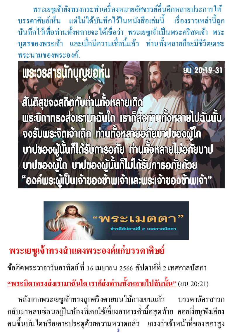 สารวัด ฉบับที่ 151431 วันอาทิตย์ที่ 16 เมษายน ค.ศ. 2023 สัปดาห์ที่ 2 เทศกาลปัสกา ฉลองพระเมตตา