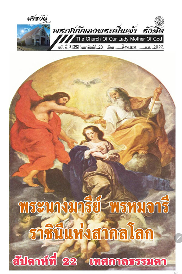 สารวัด ฉบับที่ 151398 วันอาทิตย์ที่ 28 สิงหาคม ค.ศ. 2022 สัปดาห์ที่ 22 เทศกาลธรรมดา