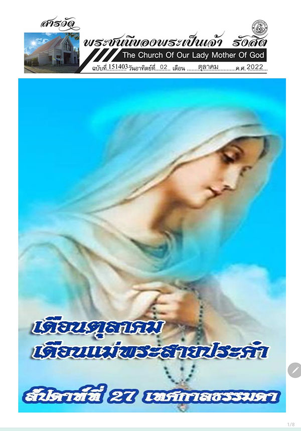 Wednesday, October 19th, 2022สารวัด ฉบับที่ 151403 วันอาทิตย์ที่ 2 ตุลาคม ค.ศ. 2022 สัปดาห์ที่ 27 เทศกาลธรรมดา