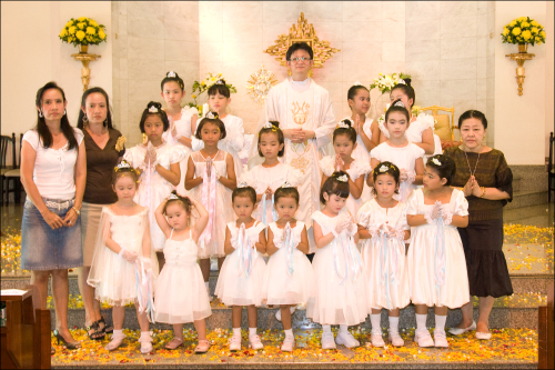 Tuesday, June 8th, 2010วันสมโภชพระวรกายและพระโลหิตพระคริสตเจ้า ที่จัดพิธีแห่ ศิลมหาสนิทปีนี้ มีบรรดาเด็กๆ มาแต่งตัวเป็นเทพธิดาน้อยๆ โปรยดอกไม้ตามทางเดิน นำหน้าขบวนแห่ ศิลมหาสนิท ทำให้พิธีแห่ศิลมหาสนิท ดูสวยสดงดงามเป็นอย่างมาก เชิญชมบรรยากาศในวันนั้นได้จากภาพด้านล่างนี้นะครับ